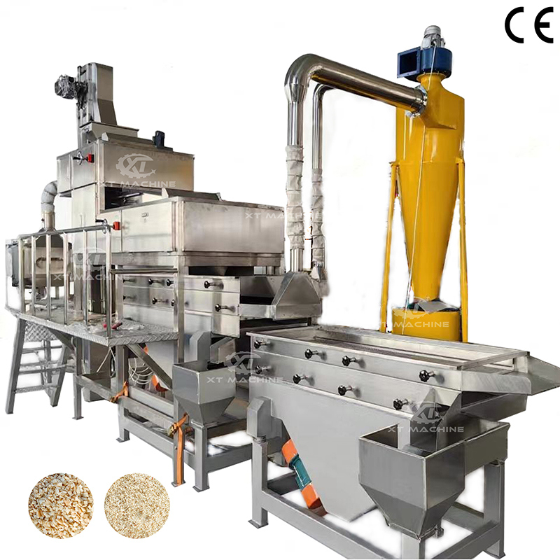 Ini pemotong kacang industri memproses kacang panggang menjadi partikel seragam melalui sistem pemotong dua tahap. kacang-kacangan diberi makan melalui konveyor vertikal, awalnya dicincang menjadi partikel kasar,kemudian dimurnikan pada tahap keduaSebuah layar getar terintegrasi menghilangkan kotoran dan mengurutkan partikel ke dalam empat spesifikasi: di atas 4mm, 2.5-4mm, 1.8-2.5mm, 1.4-1.8mm, dan di bawah 1.4mm.