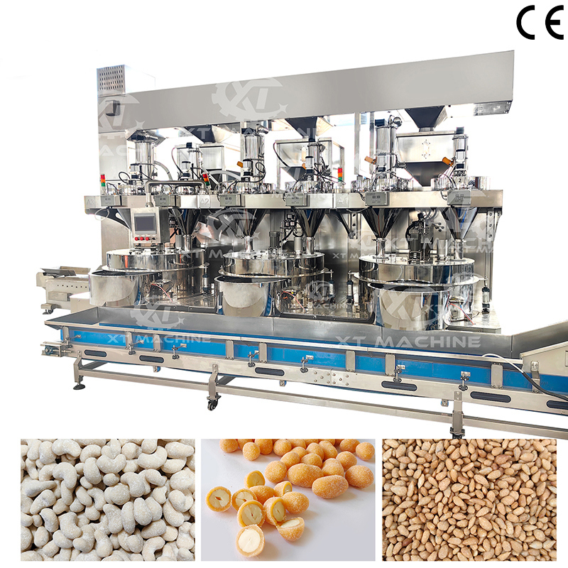 Mesin Pelapis Tiga-stasiun Kapasitas Besar Otomatis Penuh Mesin Pelapis Kacang dengan Paprika Untuk Pelapis Kacang-kacangan dan Biji-bijian