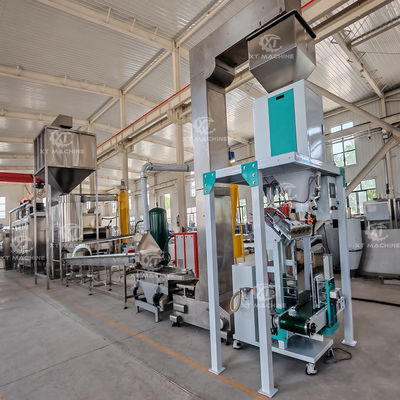 Pabrik pengupas kacang terutama memproses kacang tanah, kacang hazel, dan pistachio. peralatan utama termasuk oven multifungsi berkelanjutan, mesin pengupas kacang udara, pemroses warna,dan mesin kemasan.