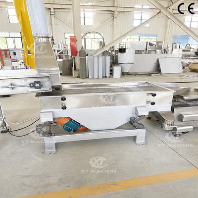 The vibrating screen is made of food-grade stainless steel mesh. When the material enters the screen from the hopper, it will continue to move forward with the vibration. At the same time, the attachments on the surface of the material will fall from the screen holes, thereby achieving the effect of removing the attachments on the surface of the material.