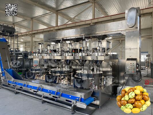 Mesin pelapis otomatis berkinerja tinggi yang dirancang untuk memproses kacang tanah, kacang kelapa, kacang, dan berbagai biji di fasilitas manufaktur makanan dan camilan.