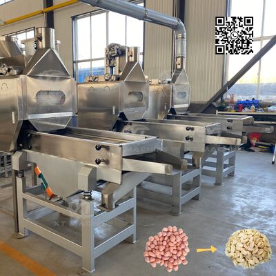 Mesin khusus untuk memecah kacang panggang menjadi setengah atau potongan yang lebih kecil sambil menghilangkan kulit merah melalui sistem pengumpulan angin topan.